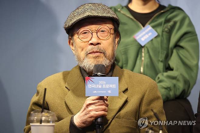 (서울=연합뉴스) 강민지 기자 = 배우 신구가 7일 서울 종로구 대학로예술극장에서 열린 2026 연극내일 프로젝트 기자간담회에서 인사말을 하고 있다. 2026.4.7