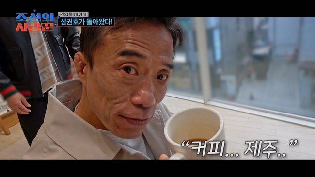 수술 후 안색이 좋아지고 살이 오른 모습에 황보라는 "같은 사람 맞느냐"며 깜짝 놀랐다. 심권호는 "저번 주에 축구도 했었다. 사람들이 나 아픈 줄을 모르더라"면서 자신감을 드러냈다. 심지어 스타일링까지 완벽하게 마친 그는 "웬만하면 사람들 다 꼬실 수 있는 거 아니냐"면서 내친김에 커피 CF 설정샷까지 찍어 웃음을 자아냈다.