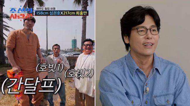 제주 공항에서는 '연예계 마당발' 윤정수와 '6년 차 제주도민' 최홍만이 심권호를 마중 나와 역대급 비주얼을 완성했다. 체육계 최단신인 158cm의 심권호, 결코 크지 않은 윤정수, 그리고 217cm의 거인 최홍만이 한 화면에 담기자 최성국은 "영화 '반지의 제왕' 완성이다. 최홍만이 ‘간달프’고 두 사람이 ‘호빗’ 같다"며 폭소했다.