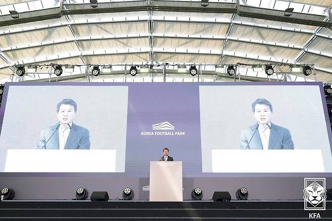 정몽규 회장은 "오늘 대한민국 축구의 새로운 100년을 이끌 코리아풋볼파크가 개관해 기쁘다"고 말했다.