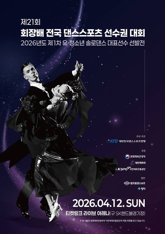 특히 이번 대회에서는 우리나라 최초로 초등 고학년, 중고교 선수들을 대상으로 한 '제1차 유ㆍ청소년 솔로댄스 국가대표 선발전'을 겸하고 있어, 미래의 댄스스포츠 스타를 발굴하는 중요한 이정표가 될 것으로 보인다.