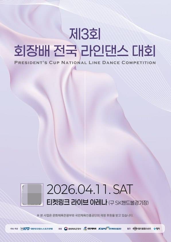 대한민국댄스스포츠연맹(회장 강일성, 이하 KFD)이 오는 11~12일 양일에 걸쳐 올림픽공원 티켓링크라이브아레나(구 핸드볼경기장)에서 '제3회 회장배 라인댄스 대회'와'제21회 회장배 전국 댄스스포츠 선수권 대회'를 개최한다.