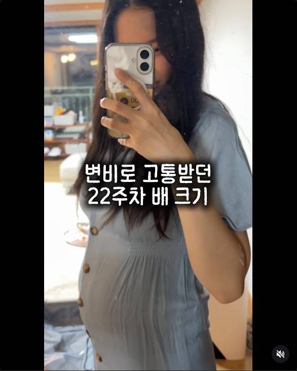 그는 영상에서 "변비로 고통받던 22주차 배 크기"라고 언급하며 임신 중 겪는 불편함을 솔직하게 드러냈다.