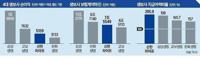 신한라이프가 순이익(별도기준)에서 3위를 달리던 한화생명을 제치면서다.
