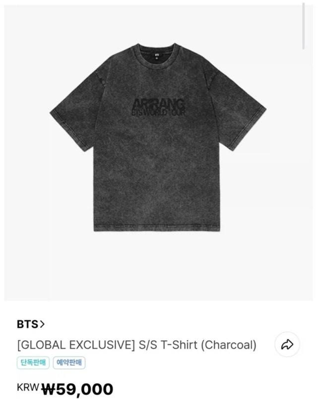 소속사 빅히트 뮤직은 오늘(7일) SNS를 통해 "BTS 월드 투어 '아리랑' 공식 상품 중 '[전세계 한정] S/S 티셔츠 (챠콜)' 제품의 품질 이슈가 확인됐다. 이에 대한 조치로 판매를 즉시 중단했다"고 밝혔습니다.
