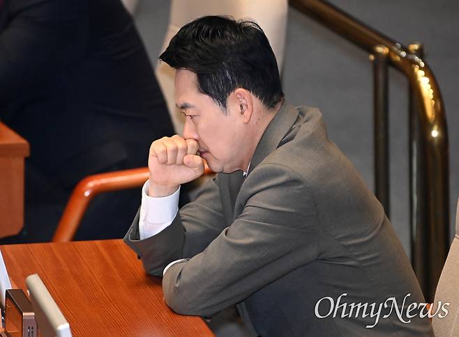 | ▲ 장동혁 국민의힘 대표가 지난 2일 서울 여의도 국회 본회의장에서 열린 이재명 대통령의 중동 사태 대응 등을 위한 추가경정예산안을 경청하고 있다. |