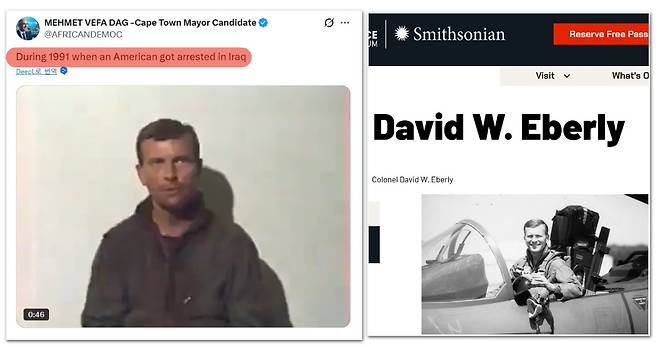 하지만 구글 이미지 역검색 결과, 해당 영상 속 실제 주인공은 지난 1991년 걸프전 당시 이라크군에 생포됐던 미 공군 소속 데이비드 W. 에벌리(David W. Eberly) 대령으로, 이번 이란 작전과는 무관한 인물로 확인됐다.