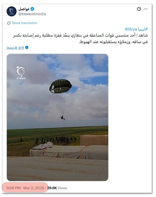 | ▲ 최근 이란군에 격추된 미군 F-15 전투기 조종사 생포 장면이라고 퍼진 영상은 지난 3월 2일 리비아 특수부대 훈련 영상으로 확인됐다. |