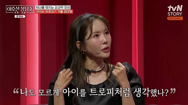첫 번째는 '거울 엄마형'으로, 이호선은 "아이의 거울에 엄마가 비치는 경우가 있다. 기본적으로 자기애가 충만하다. 아이를 트로피처럼 쓰는 거다"라며 한 사연을 공개했다.