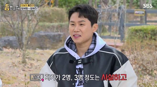 양세형, 양세찬은 자주 만난다고. 유재석은 "'런닝맨'에서 (세찬이한테) 뭐했냐고 물으면, 형이랑 만났다고 한다"고 밝혔다.