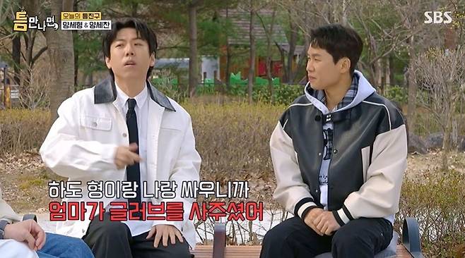 이를 듣던 유연석은 "나도 두 살 터울 형이 있다. 내가 항상 키가 작았다가, 고등학교 가서 키가 똑같아졌다. 그래서 반항했다가 크게 한 방 맞았다"고 떠올렸다. 양세찬은 "전 형과 진짜 많이 치고받고 싸웠다. 하도 싸우니까 엄마가 글러브를 사주셨다"고 밝혔다.