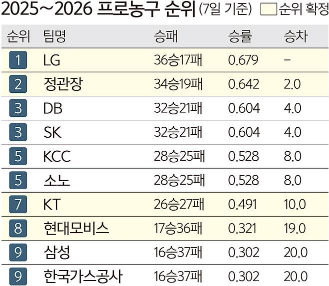 특히 LG(1위)와 정관장(2위)이 4강 PO 직행 티켓을 선점했고 이미 6강 PO 진출 팀은 가려졌지만 PO 대진표는 여전히 안갯속이다.