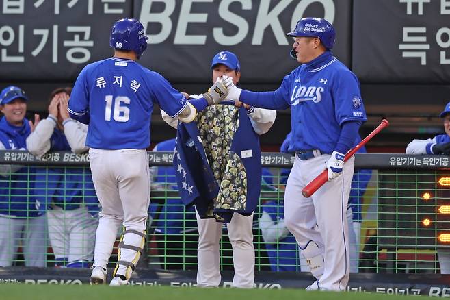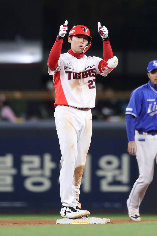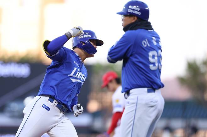 1점 차 리드에 만족할 수 없었던 삼성은 2점을 더 보탰다. 2사 2, 3루에서 강민호의 2루타 때 3루주자 구자욱에 이어 2루주자 김영웅이 홈으로 향했다. 스코어는 6-3.
