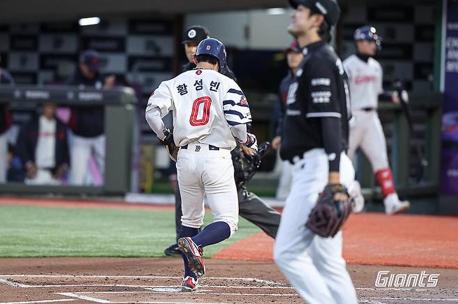 연패에 빠진 롯데는 이날 선취점을 올리며 먼저 앞서나갔다. 1회 선두타자 황성빈이 초구부터 좌전안타를 터트려 포문을 열었고, 2루 도루까지 성공했다. 레이예스가 삼진을 당하며 물러났지만, 노진혁이 친 타구가 중견수 앞에 떨어지면서 황성빈이 홈으로 들어오며 스코어 1-0이 됐다.