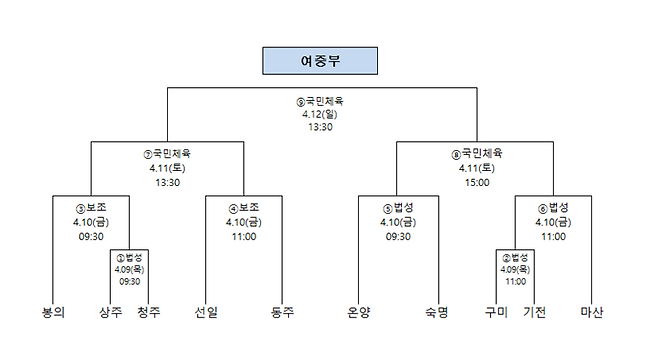 여중부 역시 결선 토너먼트 대진이 확정됐다.