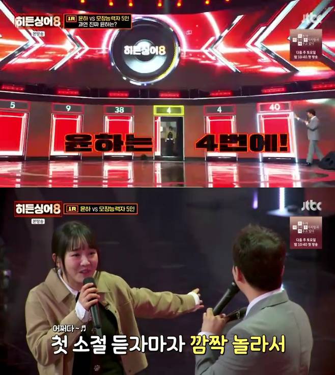윤하는 예상대로 4번 통에서 나왔다. 그는 "저 진짜 깜짝 놀랐다. 저를 놀라게 한 건 1번이었다. 도입부가 충격적이었다. 멘탈 잘 잡고 있다가 놀랐다"고 털어놨다.