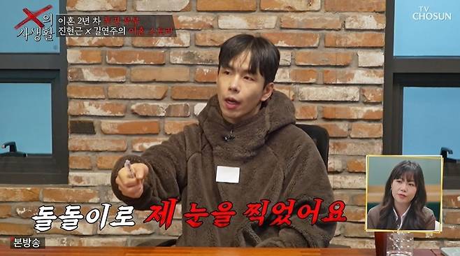 진현근이 길연주의 결벽증을 폭로하자 길연주는 "혼자 살 때도 깔끔한 성격이었는데, 결혼 후 스트레스 때문에 심해졌다"고 밝혔다. 진현근은 "X는 알코올 치료도 받았다. 술 마시면 언성이 높아지고, 감정 조절이 안 된다"라며 "아기 100일 정도 됐을 때, X가 술 먹고 젓가락을 던지고, 돌돌이로 제 눈을 찍었다. 두 번째는 제가 애를 안고 있었는데, 제 눈을 발로 찼다. 그래서 안와골절이 왔다"고 했다.