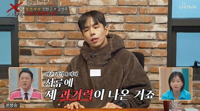 진현근은 길연주에게 이혼 경력과 아이가 있단 걸 들켰을 때를 떠올렸다. 진현근은 "협의이혼 서류를 내러 법원에 갔는데, 혼인관계증명서(상세) 서류를 떼야 하는데 제 이혼 경력이 나왔다"라고 했고, 김구라는 "우리가 흔히 얘기하는 막장 드라마 단골 스토리 아니냐. 이렇게 하면 안 되는 거다. 아내 입장에선 말도 안 되는 얘기"라고 밝혔다.