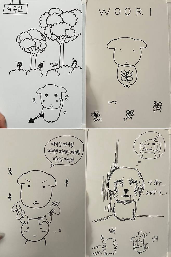 그림 그리는 게 취미인 오승인의 작품이었다. 평소처럼 좋아하는 캐릭터인 가나디를 변형한 캐릭터를 하나 그렸는데, 이를 본 강계리가 강력히 추천했다. 그러자 오승인은 잠시 주어진 휴식 시간을 활용, 선수단 전원을 금세 그렸다. 심성영은 “처음에는 한 마리(?)만 있었는데 잠시 후 다시 보니 다 그려져 있었다”라고 돌아봤다.