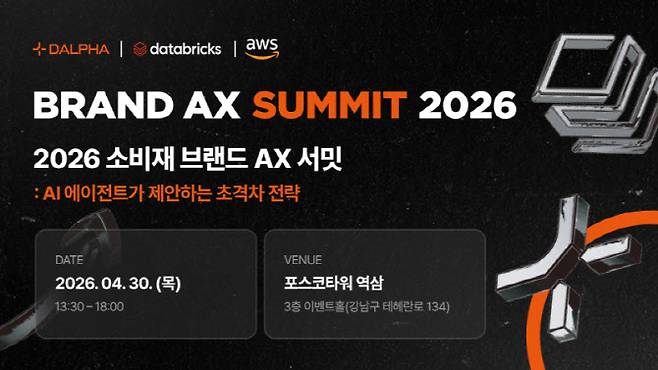 AI 에이전트 전문기업 달파(Dalpha)는 오는 30일 서울 강남구 포스코타워 역삼 이벤트홀에서 아마존웹서비스(AWS), 데이터브릭스(Databricks)와 공동 주관으로 '소비재 브랜드 AX 서밋: AI 에이전트가 제안하는 초격차 전략'을 개최한다고 8일 밝혔다.