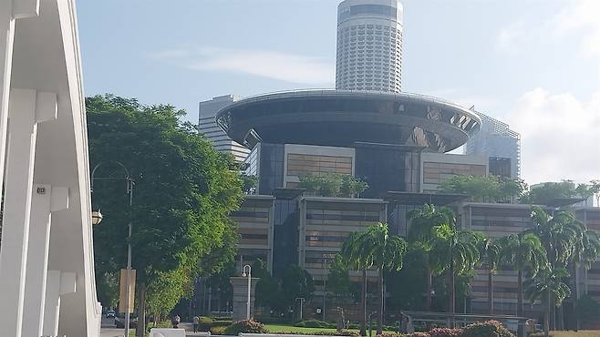 3월 16일 오후, 싱가포르 대법원을 찾았다. 원래 영상 자료로 싱가포르 대법원의 독특한 외관은 알고 있었으나, 실제 안으로 들어서니 역시나 최첨단 건물이었다. 또한 입구 검색대 직원들도 친절했다. 건물 내부는 중앙을 비워두어 쾌적했다. 입구 정면을 바라보고 도서관이 있고, 지하 1층에는 법원전시관이 위치하고 있다.