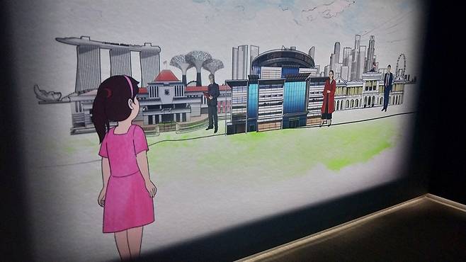 | ▲ 싱가포르 대법원 전시관에서 싱가포르 권력 분립을 설명하는 장면 |