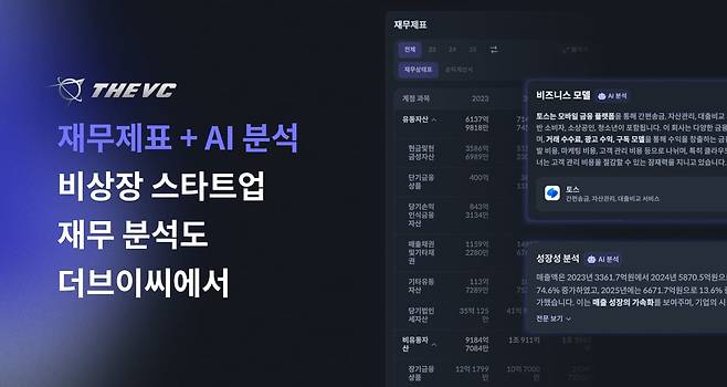 변재극 더브이씨 대표는 “상장사 분석 도구는 많지만 비상장 스타트업 재무를 투자자 관점에서 해석해주는 서비스는 부족했다”며 “이번 기능을 통해 정보 비대칭을 줄이고 투자 판단에 실질적인 도움을 줄 수 있을 것”이라고 말했다.