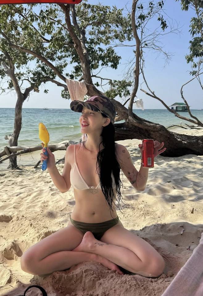 사진 속 지민은 해변에서 여유로운 시간을 보내고 있다. 특히 과감한 비키니 차림으로 군살 하나 없는 보디라인을 드러내 눈길을 끈다. 운동으로 완성한 탄탄한 복근, 늘씬한 각선미가 시선을 사로잡는다. 팔에 자리한 강렬한 타투도 돋보인다.