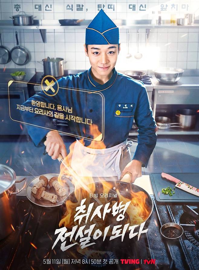 티빙 오리지널 '취사병 전설이 되다'(이하 '취사병')는 총 대신 식칼을, 탄띠 대신 앞치마를 두른 이등병 강성재가 '전설의 취사병'으로 거듭나는 과정을 그린 밀리터리 쿡방 판타지 드라마다.