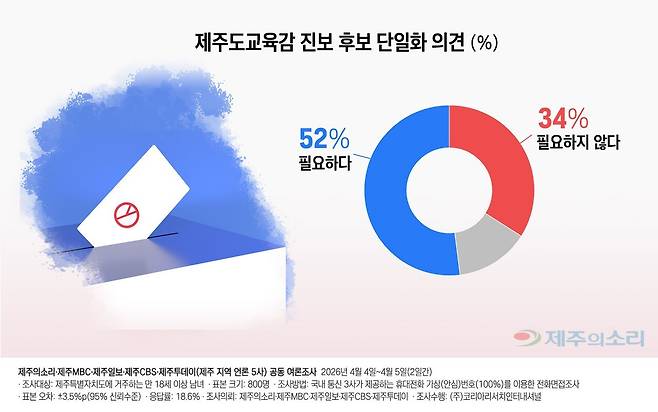 이번 여론조사에서는 과거 제주도교육감 선거의 희비를 갈랐던 핵심 키워드인 '후보 단일화'에 대한 도민들의 강한 열망도 확인됐다.