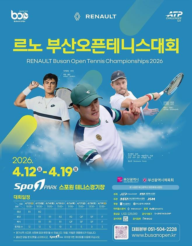 ATP CH125 르노 부산오픈챌린저에는 세계랭킹 80위~245위 선수들이 본선에 출전하며, 국내 선수로는 권순우 정윤성 남지성 등 국가대표 선수들이 출전한다.