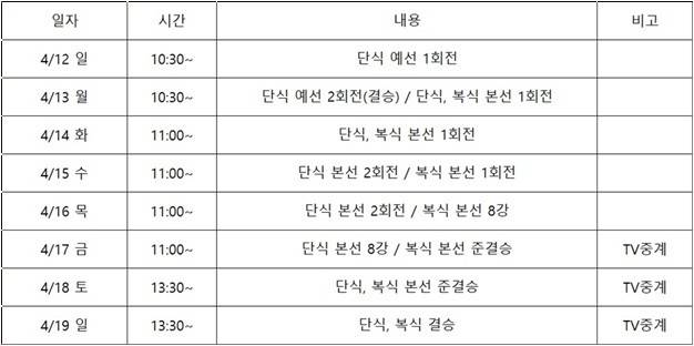 대회는 tvN Sports와 티빙을 통해 금,토,일 3일(17~19일) 간 생방송 예정이다.