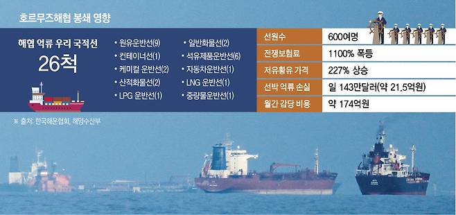국내 정유사 관련 VLCC 7척·국적 선박 26척 대기… 원유 1400만배럴 묶여