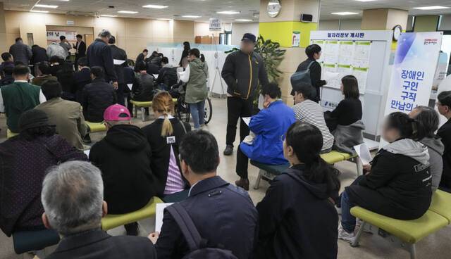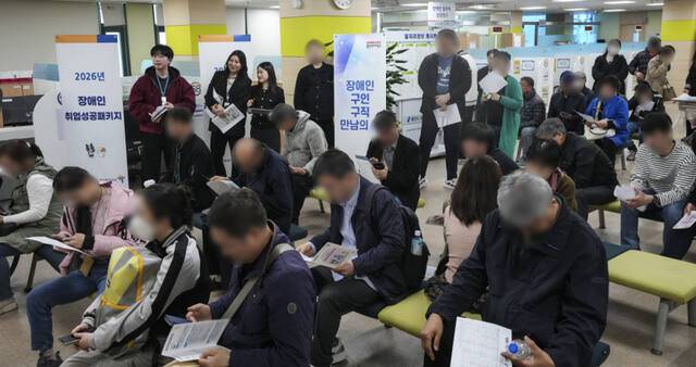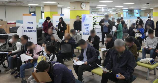 8일 오후 용인특례시 기흥구 용인시일자리센터에서 열린 ‘2026년 용인특례시 구인·구직 만남의 날’에서 구직자들이 채용기업과 면접을 진행하기 위해 대기하고 있다. 이번 행사에는 미화, 주방보조, 서비스보조, 사무직, 물류, 생산직 등 다양한 분야의 8개 기업이 참여해 총 19명을 채용할 예정이다.