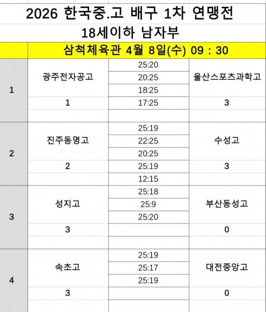 같은 남자부 C조에서는 속초고가 대전중앙고를 상대로 세트스코어 3-0(25-19, 25-17, 25-19) 완승을 거두며 2연승을 기록, 8강 진출을 눈앞에 뒀다.