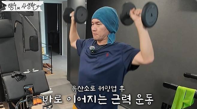 먼저 공복 운동에 나선 케이윌은 홈짐에 입성, 약 25분 인터벌 러닝으로 워밍업했다. 이어 근력 운동을 시작한 케이윌은 "10년 전까지만 해도 어깨, 하체 운동을 아예 안 했는데, 이 몸을 유지하는 것 이상의 뭔가를 만들 필요가 있단 생각이 들어서 조금씩 운동하고 있다. 제일 안 하던 운동을 제일 먼저 시작하는 나이가 됐다"고 고백했다.