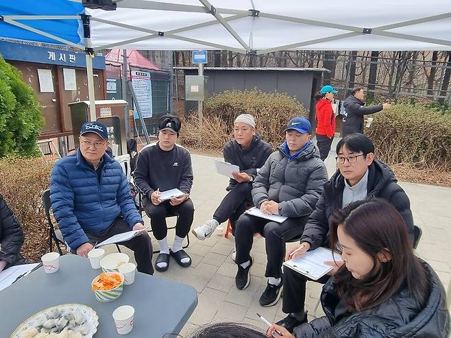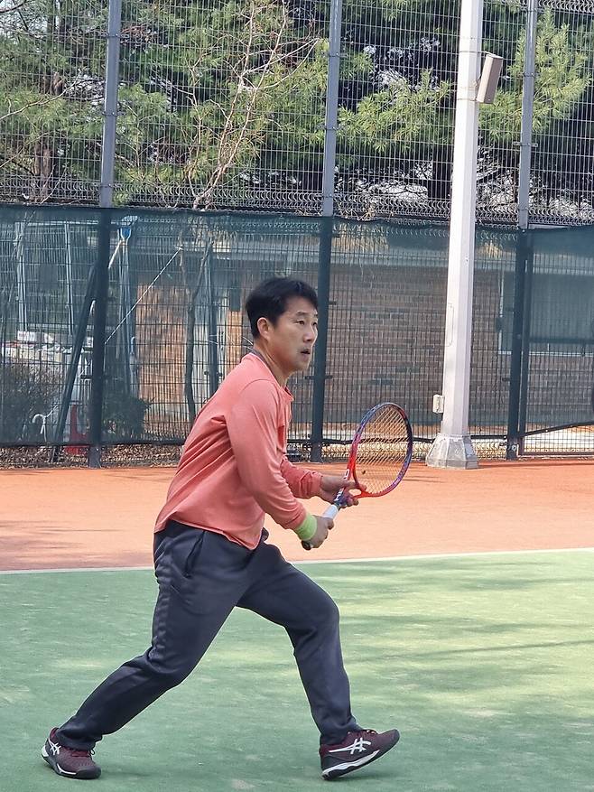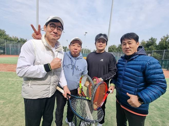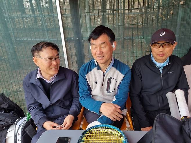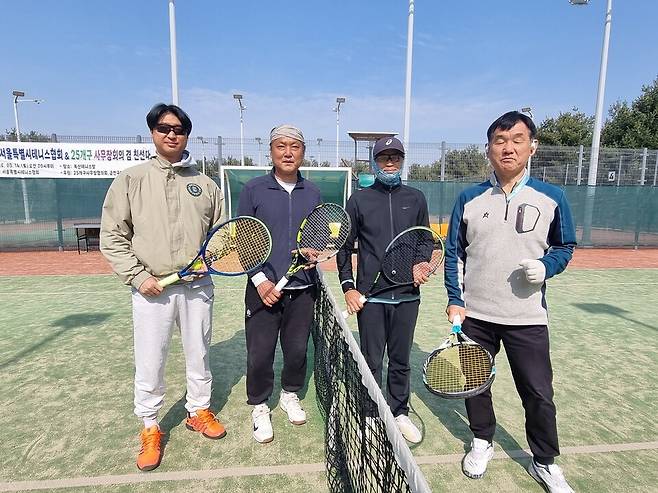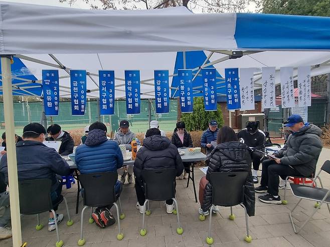 현안 회의를 마치고 교류전을 했다. 금천구테니스협회 김유환 사무장은 "사무장들은 일년에 두 번 정기 모임을 하는데 3월 모임에서 바뀐 안건들을 공유하고 논의한다"고 전했다.