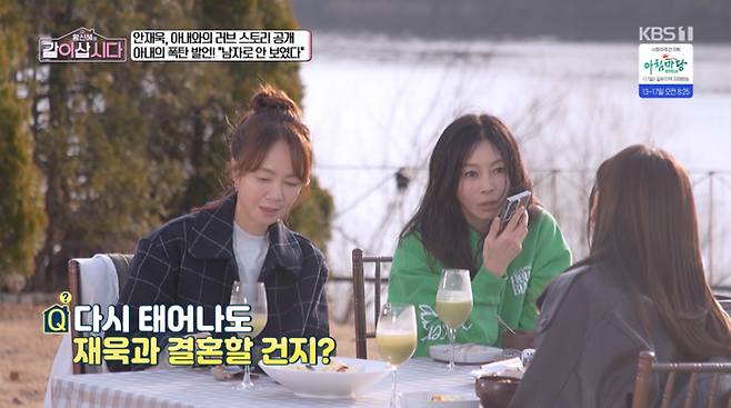 8일 방송된 KBS 1TV 예능 프로그램 '황신혜의 같이 삽시다'에는 황신혜의 초대로 '싱글맘즈'를 찾은 안재욱의 모습이 그려졌다. 어느덧 결혼 12년 차를 맞이한 안재욱은 여전히 달달한 신혼 같은 일상을 전하며 아내와의 러브스토리를 공개했다.