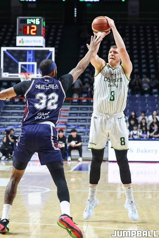 알바노가 공수에 걸쳐 활약한 가운데 4쿼터를 지배한 이는 엘런슨이었다. 4쿼터에만 10점 6리바운드 2어시스트를 집중시키며 DB의 공격을 이끌었다. 경기 종료 46초 전 10점 차로 달아난 쐐기 덩크슛도 엘런슨의 손에서 나왔다. KCC를 제압한 DB는 이어 SK가 정관장에 65-67로 패, 3위에 오르며 정규시즌을 마쳤다.