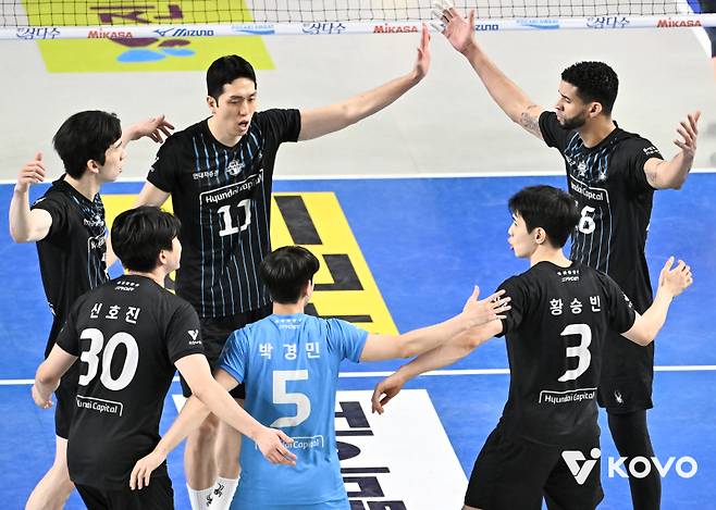 현대캐피탈은 토종 공격수 허수봉이 20득점으로 펄펄 날았다. 공격성공률도 56.25%로 높았다. 레오나르도 레이바 마르티네즈(등록명 레오)가 이날 17득점으로 팀 승리에 힘을 보탰다. 특히 고비마다 터진 블로킹을 앞세워 분위기를 끌고 왔다. 정규시즌 팀 블로킹 1위였던 현대캐피탈은 이날 높이 싸움에서 12-8로 앞섰다.