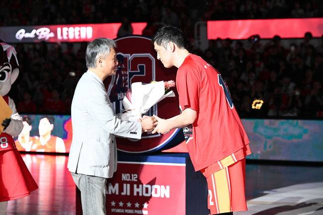 현대모비스 구단은 함지훈 은퇴에 큰 공을 들였다. 여러 가지 행사를 마련했다. 유재학 경기본부장 등 옛 은사들부터 가족들까지 모두 초청됐다. 결국 함지훈도 참았던 눈물을 터트렸다.
