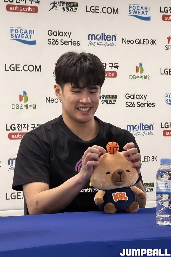 방송사 인터뷰를 마치고 돌아온 벨란겔은 수훈선수 인형을 손에 든 채 인터뷰실로 들어왔다. 짐가방은 뒤로 내려놓았지만, 인형만큼은 끝까지 손에서 놓지 않았다. 작은 인형을 만지작거리며 이어간 인터뷰에는 승리의 기쁨과 시즌의 끝자락이 묘하게 함께 묻어났다.