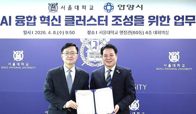 안양시는 8일 서울대 행정관 4층 대회의실에서 ‘AI 융합 혁신 클러스터 조성을 위한 업무협약(MOU)’을 체결했다고 밝혔다.