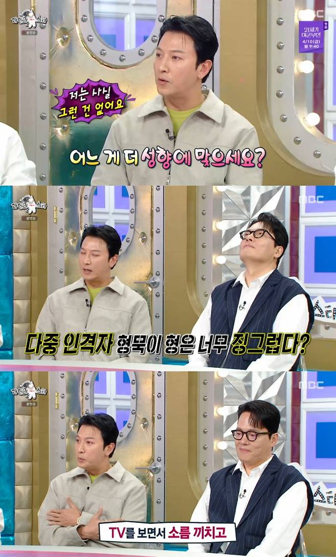 또 박건형은 김형묵에 대해 "형묵이 형은 저한테 딱 3가지 이미지로 남아있다"면서 '다중인격'이라고 말해 궁금증을 유발했다.