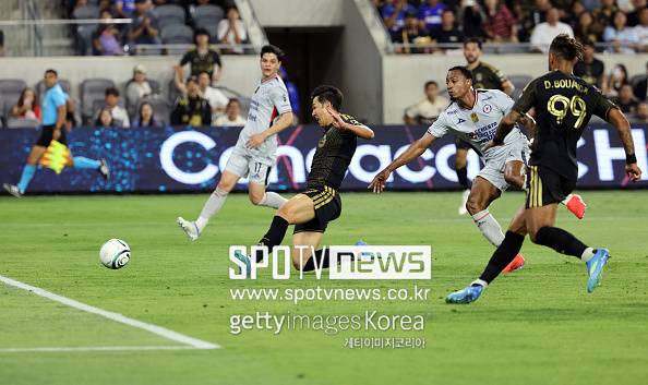 이날도 최전방 스트라이커로 나선 손흥민은 지속적으로 수비 라인을 괴롭히며 득점 찬스를 노렸다. 단 한 번 찾아온 기회를 놓치지 않았다. 전반 30분 하프라인 아래에서 볼을 끊어낸 LAFC가 빠르게 역습을 펼쳤다. 오른쪽 측면으로 보낸 볼을 슈아니에르가 잡지 않고 곧바로 문전으로 크로스를 보냈다. 이를 손흥민이 미끄러지면서 발을 갖다 대며 선제골을 뽑아냈다.