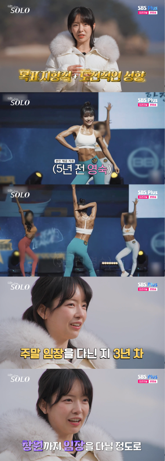 90년생인 영숙은 “공기업에서 11년 차 과장으로 근무하고 있다”며 탄탄한 직업을 공개했다. 이어"목표지향적이고 도전적이다. 바디프로필뿐만 아니라 피트니스 대회도 나간 적이 있다”고 밝혀 철저한 자기관리의 끝판왕임을 증명했다.