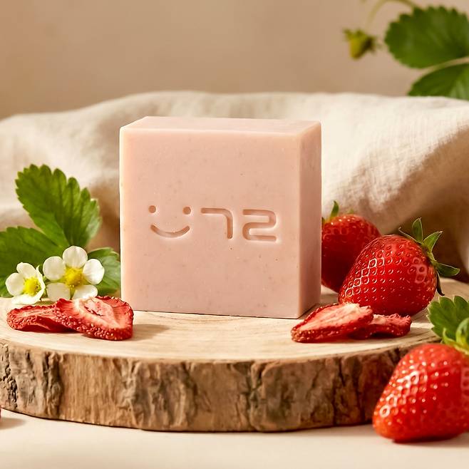 | ▲ 논산 특산품인 딸기가 함유되어 있으며 논산발그래일터의 발달장애인 직원들이 만든 비누 |