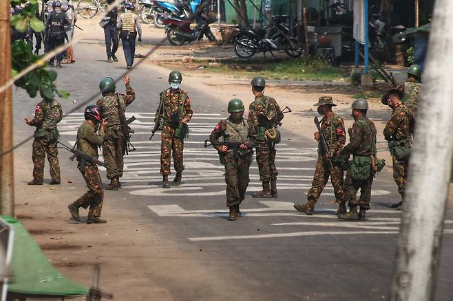 | ▲ 군부 쿠데타에 저항하는 미얀마 만달레이 시민들이 2021년 3월 14일 시위를 벌이고 있는 모습. 사진을 보내온 미얀마 사진기자 모임 'MPA(Myanmar Pressphoto Agency)'는 "군부의 총격으로 여러 명이 죽거나 다쳤다"고 전했다. |