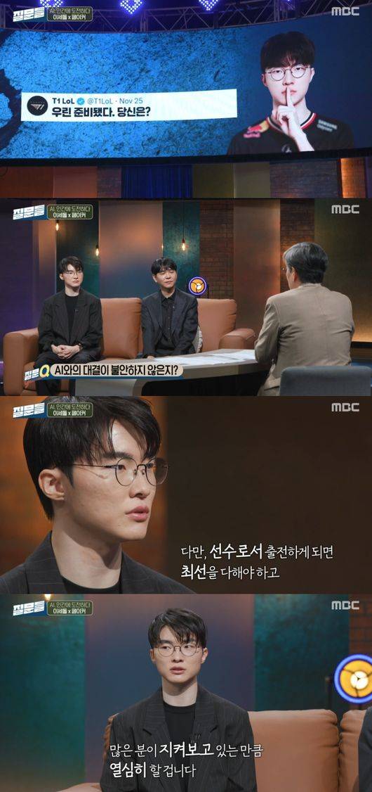 8일 방송된 MBC ‘손석희의 질문들’에서는 프로게이머 ‘페이커’ 이상혁과 이세돌 9단이 출연한 가운데 AI와의 대결에 대해 이야기를 나누는 모습이 그려졌다.