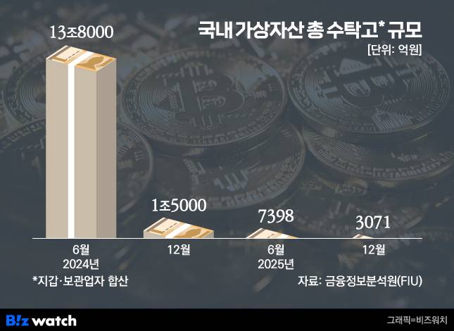 수탁업체들의 부진한 실적은 수탁고가 감소한 탓이 크다. 금융정보분석원(FIU)의 실태조사에 따르면 2024년 6월말 국내 총 수탁고는 13조8000억원에 달했지만 그해 말 1조5000억원으로 줄었고, 지난해말에는 3071억원까지 떨어졌다. 1년 반만에 무려 98%나 급감했다.